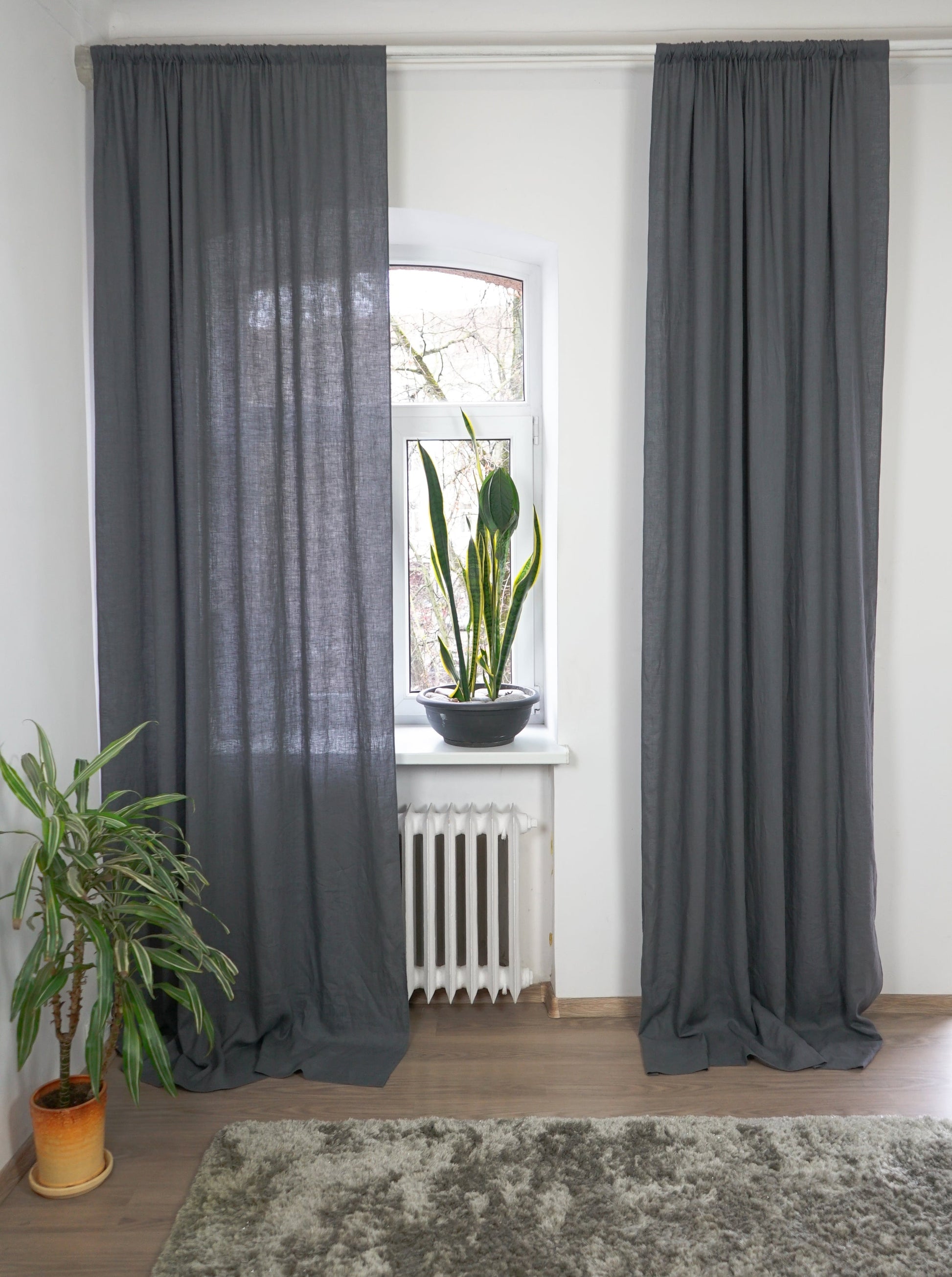 Užsisakykite pilkas lininės užuolaidas su kišene karnizui ir suteikite savo namams švelnios šviesos,