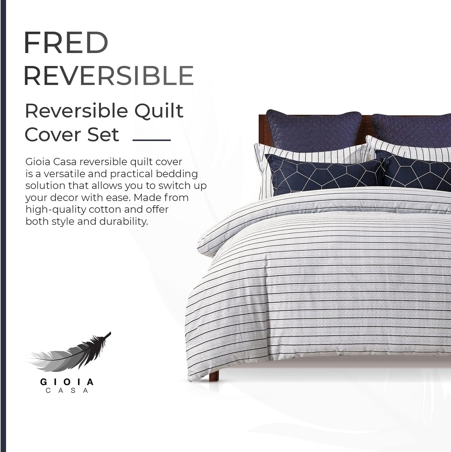 Prekės ženklas Gioia Casa garsėja stilingais ir ilgaamžiais namų tekstilės gaminiais. „Fred“ modelio antklodžių užvalkalų komplektas – tai modernus dizainas, kokybiška medžiaga ir jaukumas kiekvieną naktį.